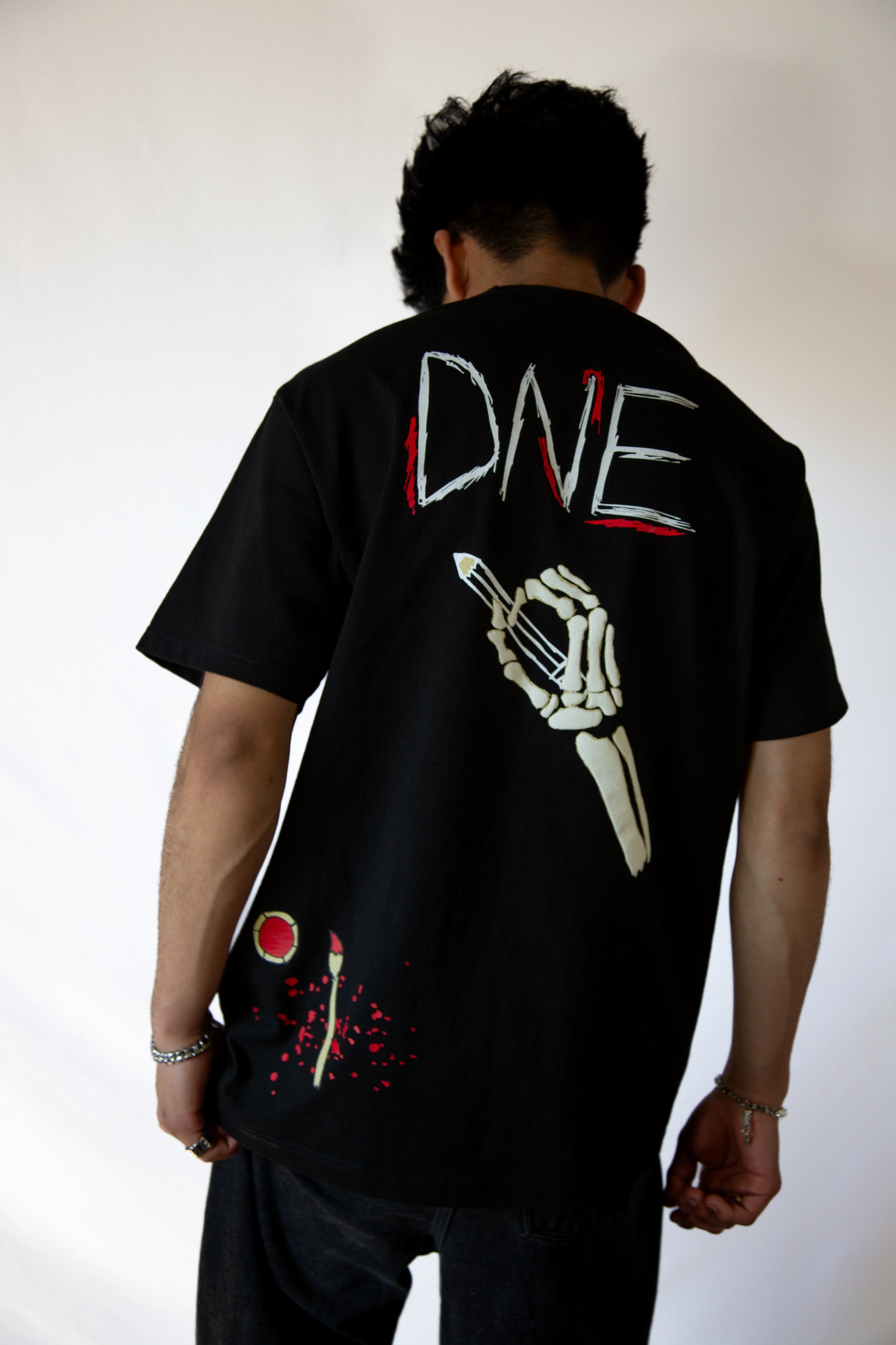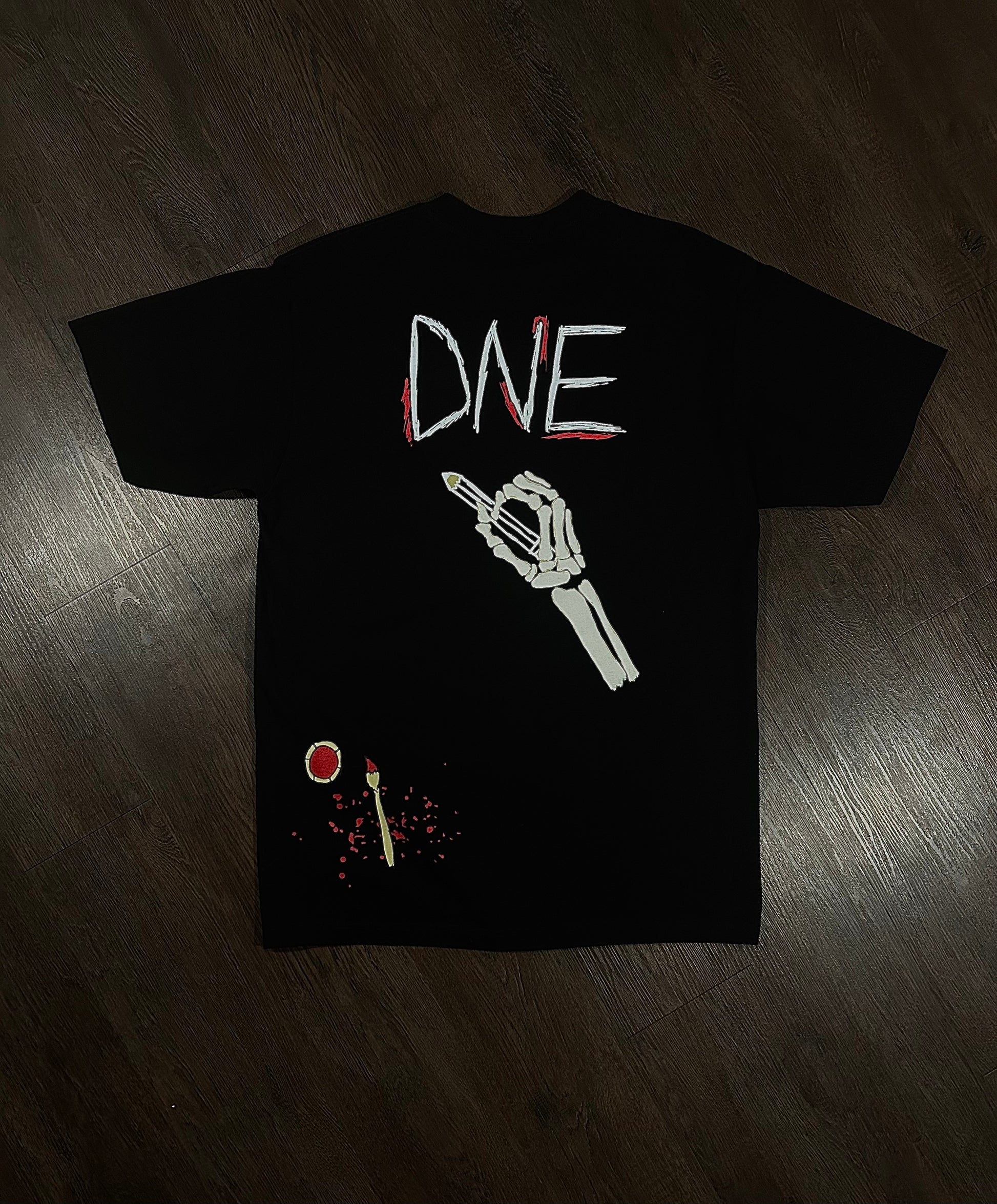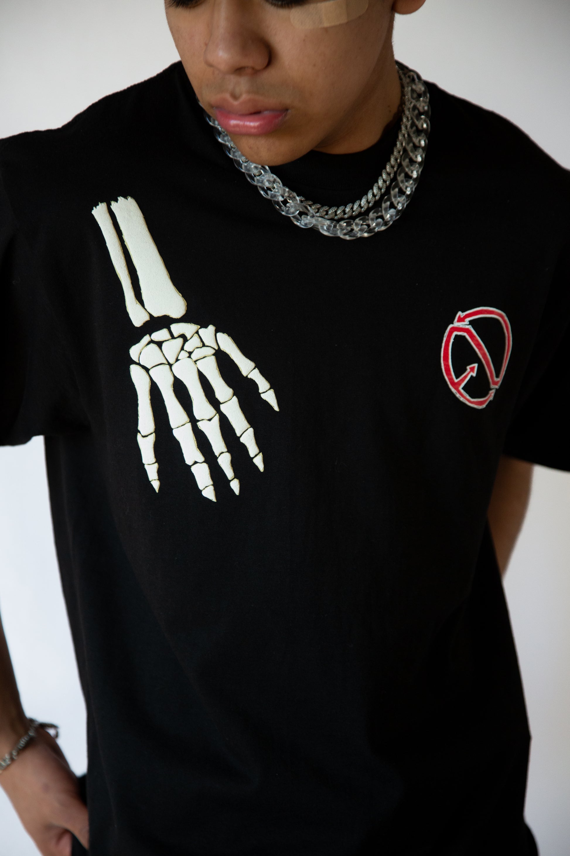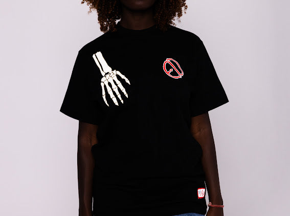 The Black Limited Tee features a heavyweight oversized puff print, showcasing a unique art piece of a Skelton hand. This stylish tee is perfect for those looking to make a bold statement with their fashion. Made with high-quality material, it offers both style and comfort in one.