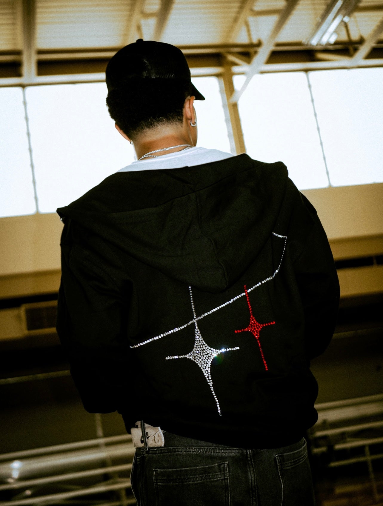 Thick comfortable zip up hoodie with unique quality rhinestone design