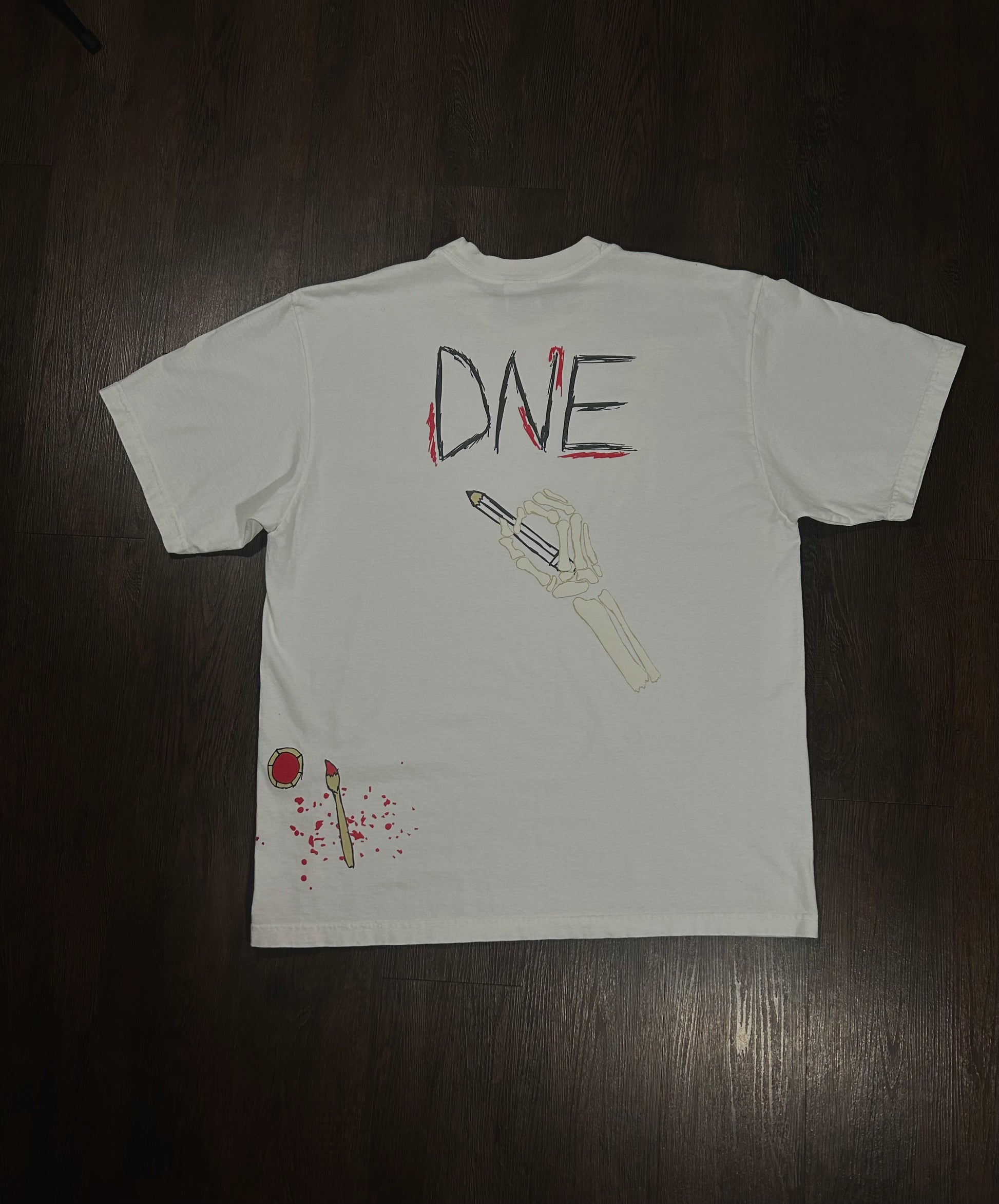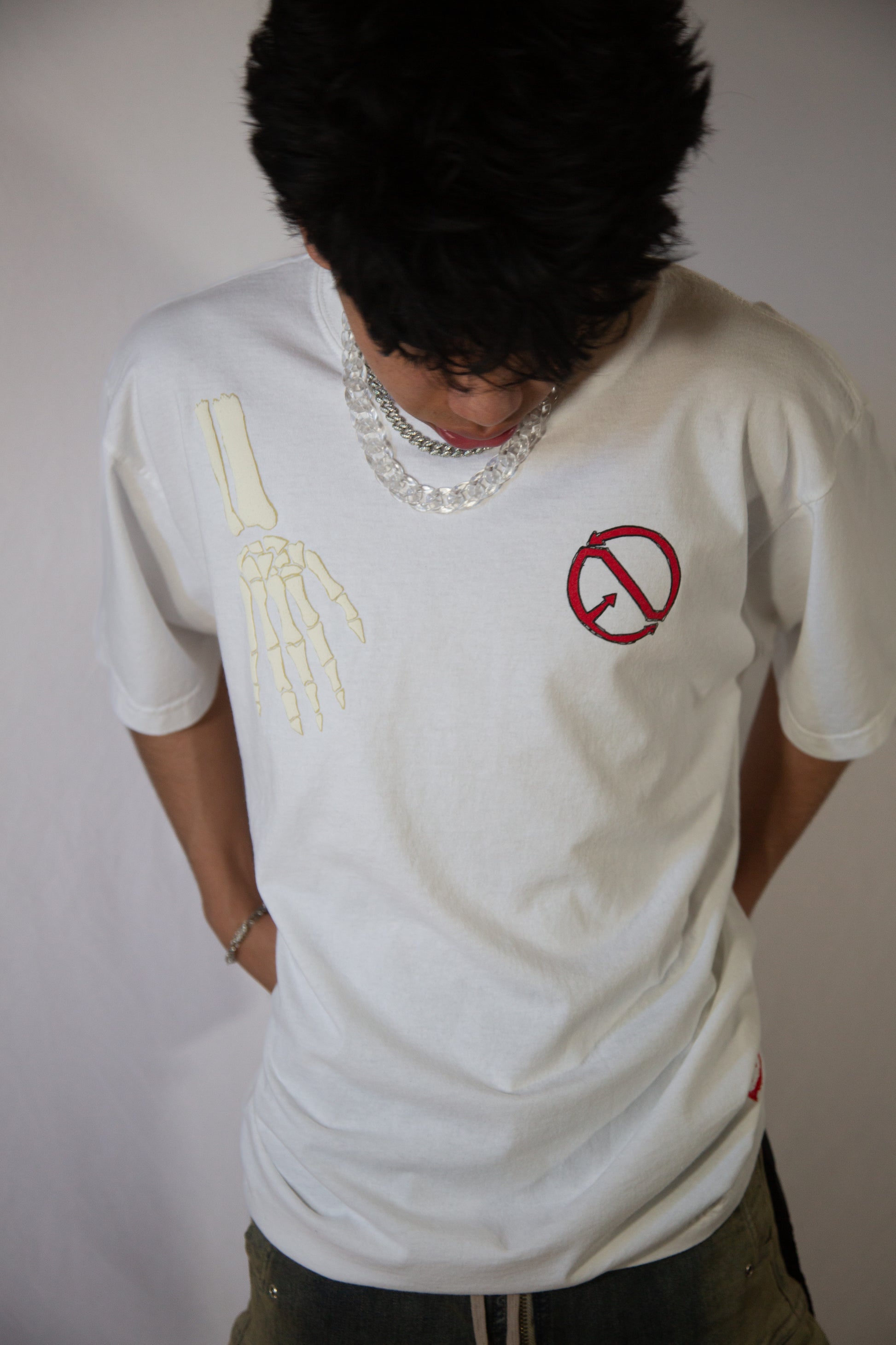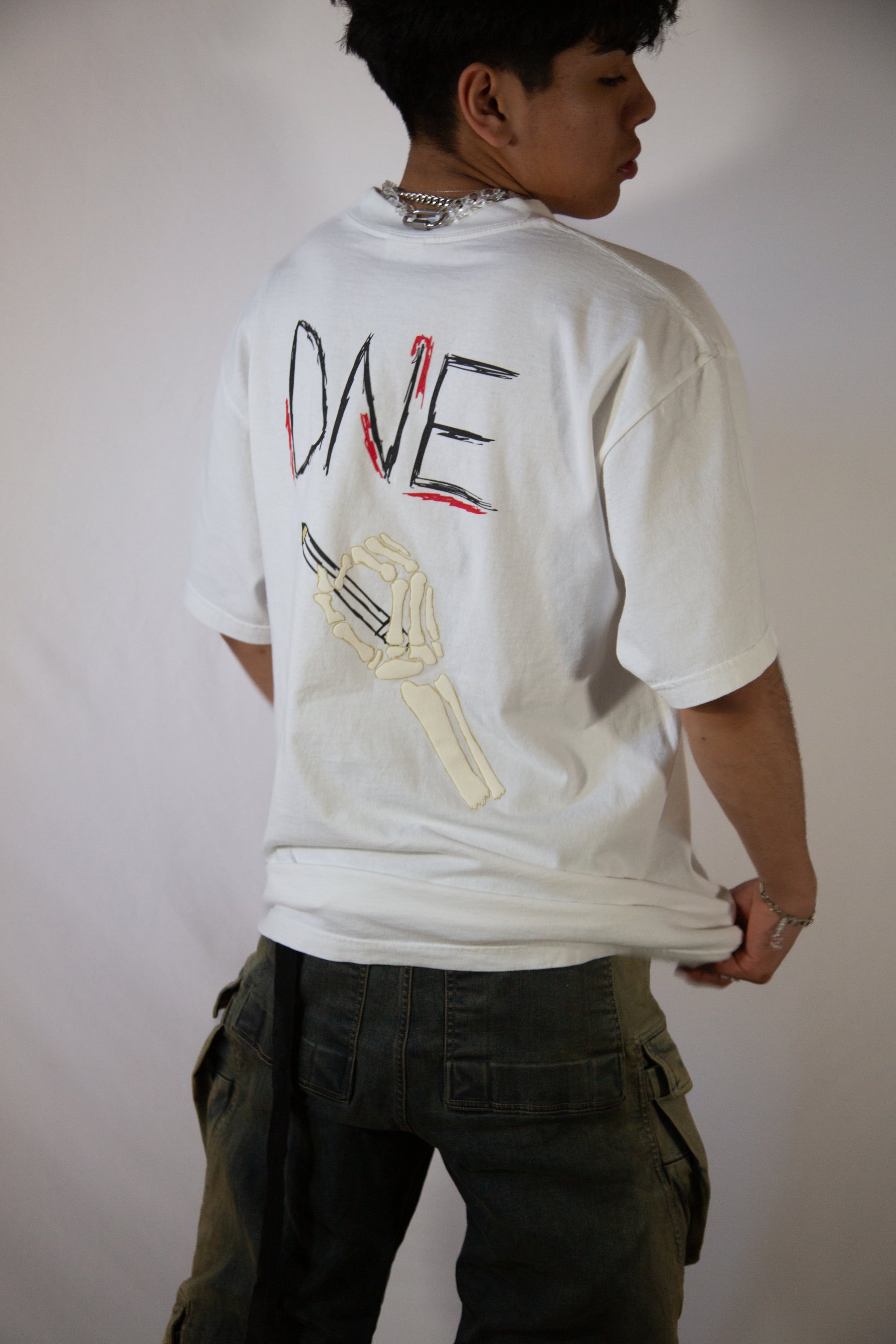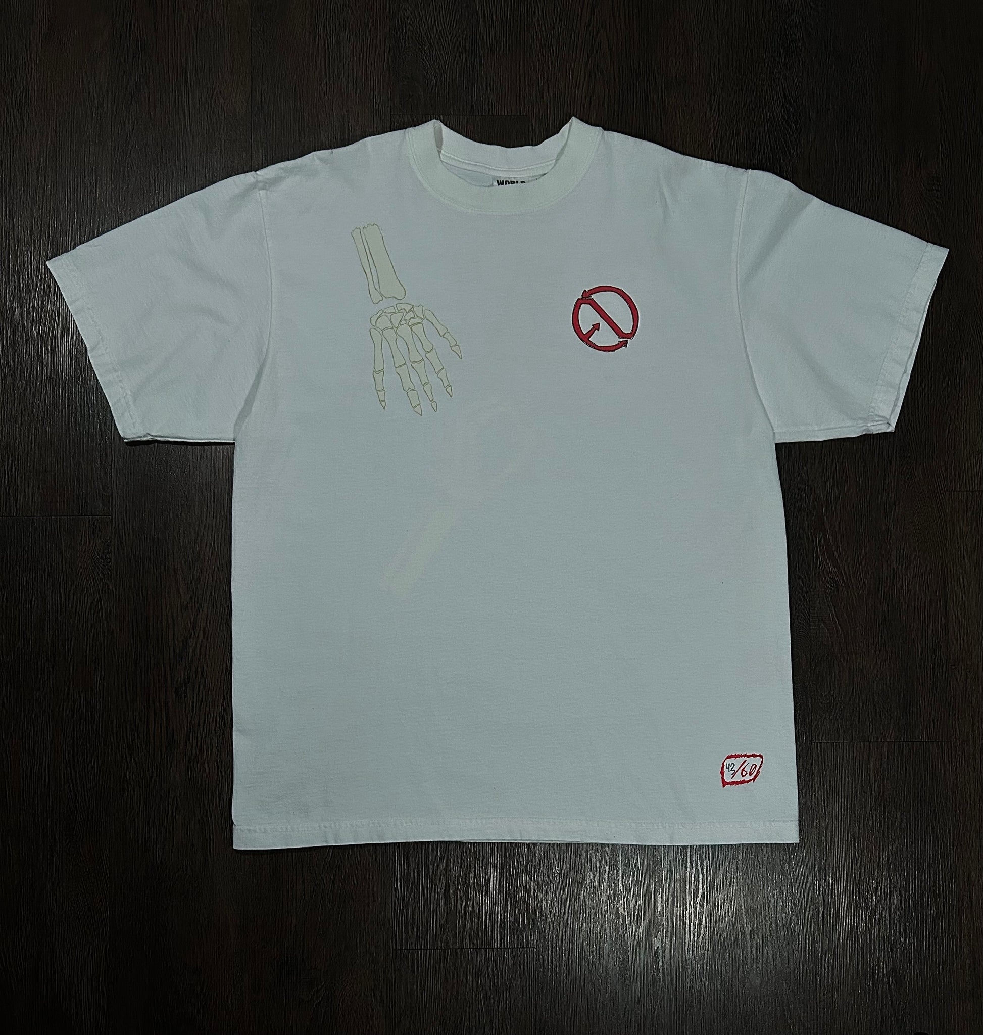 "The White Limited Tee features a heavyweight oversized puff print, showcasing a unique art piece of a Skelton hand. This stylish tee is perfect for those looking to make a bold statement with their fashion. Made with high-quality material, it offers both style and comfort in one."